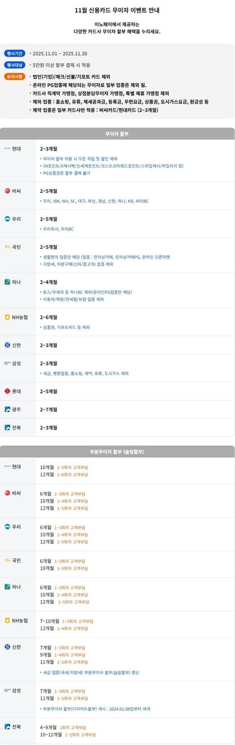 11월 신용카드 무이자 이벤트 안내