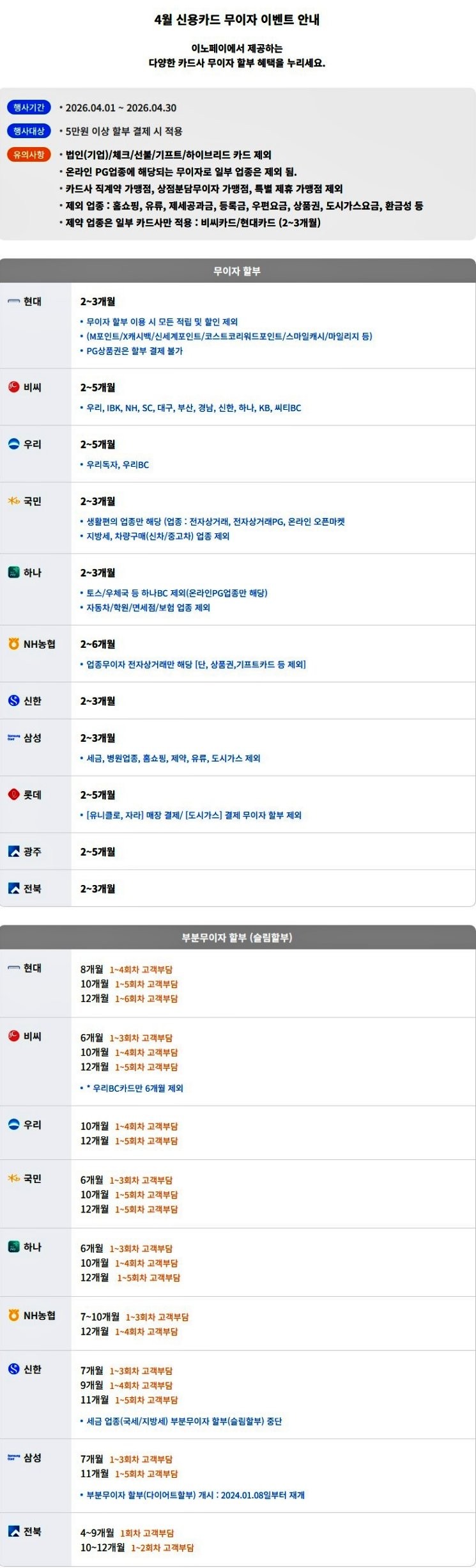 4월 신용카드 무이자 이벤트 안내