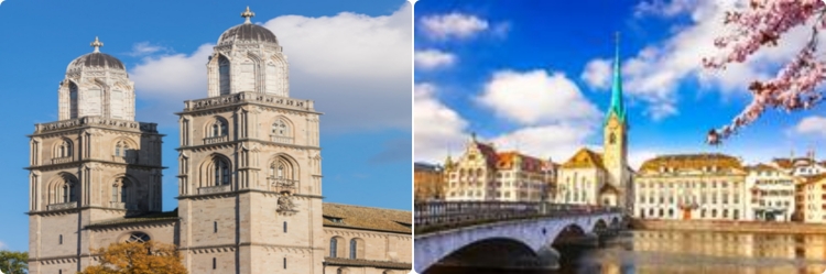 기차역으로 이동후 가방 보관 ▶그로스 뮌스터,프라우 뮌스터등 취리히 시내 관광 ● 종교개혁이 시작된 곳으로, 그로스뮌스터의 둥근 종탑 두 개는 취리히의 상징이다. ● 샤갈의 스테인글라스를 볼 수 있는 취리히의 대표적인 성당이다. 취리히 출발 -> 루쩨른으로 이동