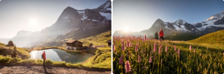 ▶리기산 정상에서 하이킹 ● 모습을 가장 잘 감상할 수 있는 고르너그라트 전망대 ● 이곳에서는 융프라우요흐, 티틀리스, 필라투스 등의 광활한 전망을 즐길 수 있으며, 말로 표현할 수 없는 웅장한 일출도 즐길 수 있습니다. |