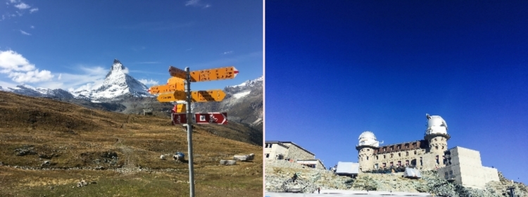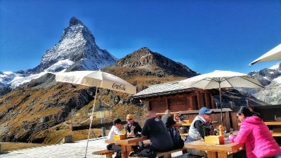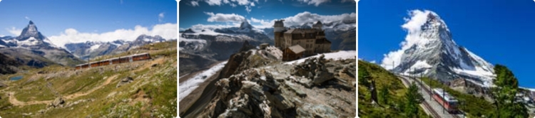 캐리어를 가지고 웨스트역으로 이동 슈피츠역 도착후 캐리어 보관 VIP역 도착후 관광 열차로 환승 ▶넓은 차창 경치를 즐길 수 있는 관광열차 산악열차를 타고 고르너그라트로 이동 ▶마테호른 고르너그라트 전망대 관광 ● 마테호른 모습을 가장 잘 감상할 수 있는 고르너그라트 전망대 ▶Gornergrat - Rotenboden 까지 하이킹 고르너그라트 전망대에서 몽블랑에 이어 알프스 산맥에서 두 번째로 높은 몬테로사 Monte Rosa(4,634m)와 4,000m급 봉우리 파노라마 감상 ▶Rotenboden역에서 케이블카 탑승 |