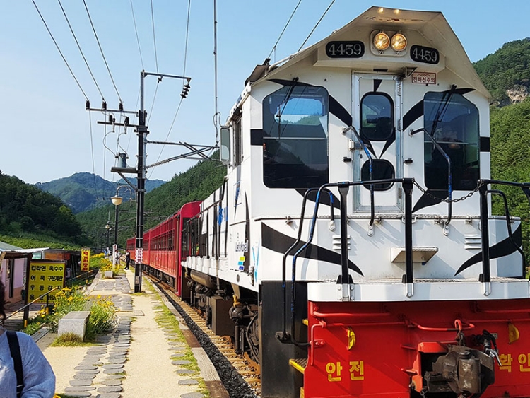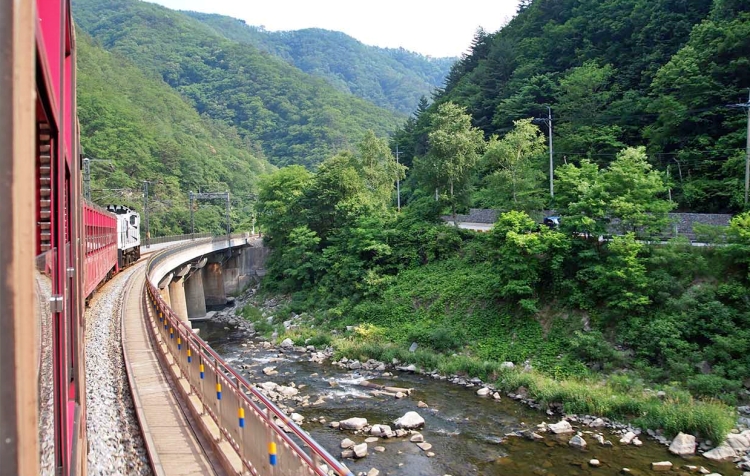 백두대간 협곡열차 출발합니다. (10분전 탑승장으로 이동하여 탑승해 주세요.) 산과 물이 어우러진 백두대간의 아름다움을 감상해 보세요.
