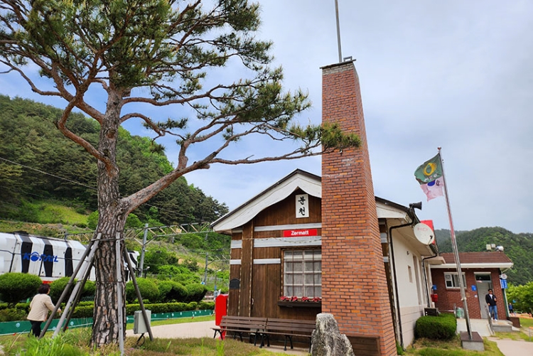 철암역에 도착 후 투어버스를 타고 선암마을로 이동 |